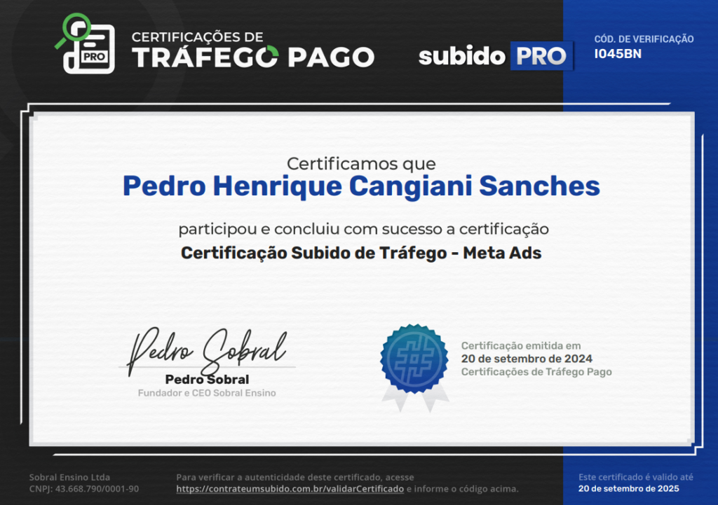 Tenho mais de 3 anos de experiência no mercado, possuo MBA em Gestão de Tráfego e Mestrado pela Universidade Federal de Santa Catarina (UFSC).